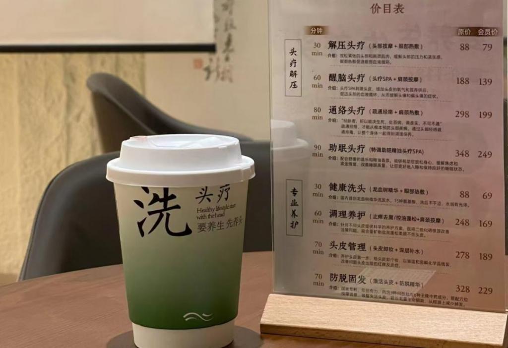 有养发馆就打出, 头疗一次相当于 8 小时深度睡眠 ;还有沉浸式 激活第三眼轮 ;中医 + 洗头相结合,边喝茶边洗头。